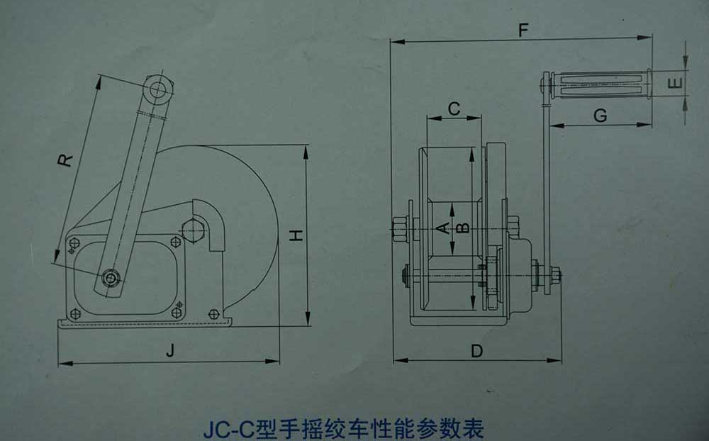 JC-C型手搖絞車性能參數表 JC-C WINCH SPEIFICATIONS | |||||